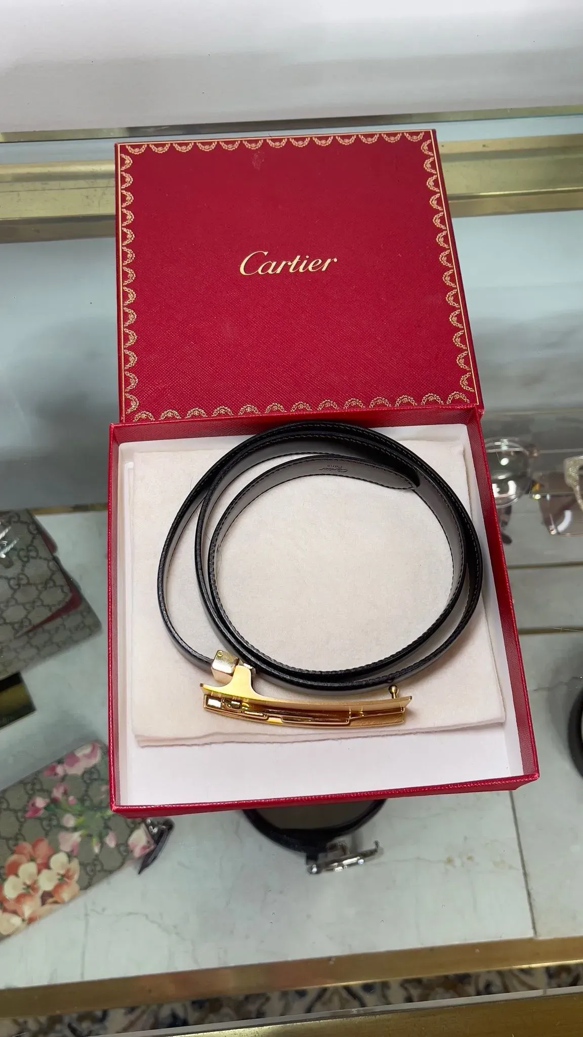 Este elegante cinturón de dama de Cartier en talla S es el complemento perfecto para realzar tu estilo. Confeccionado con materiales de alta calidad, este accesorio de lujo añadirá un toque de sofisticación a cualquier outfit. ¡Hazte con él y destaca en cualquier ocasión!