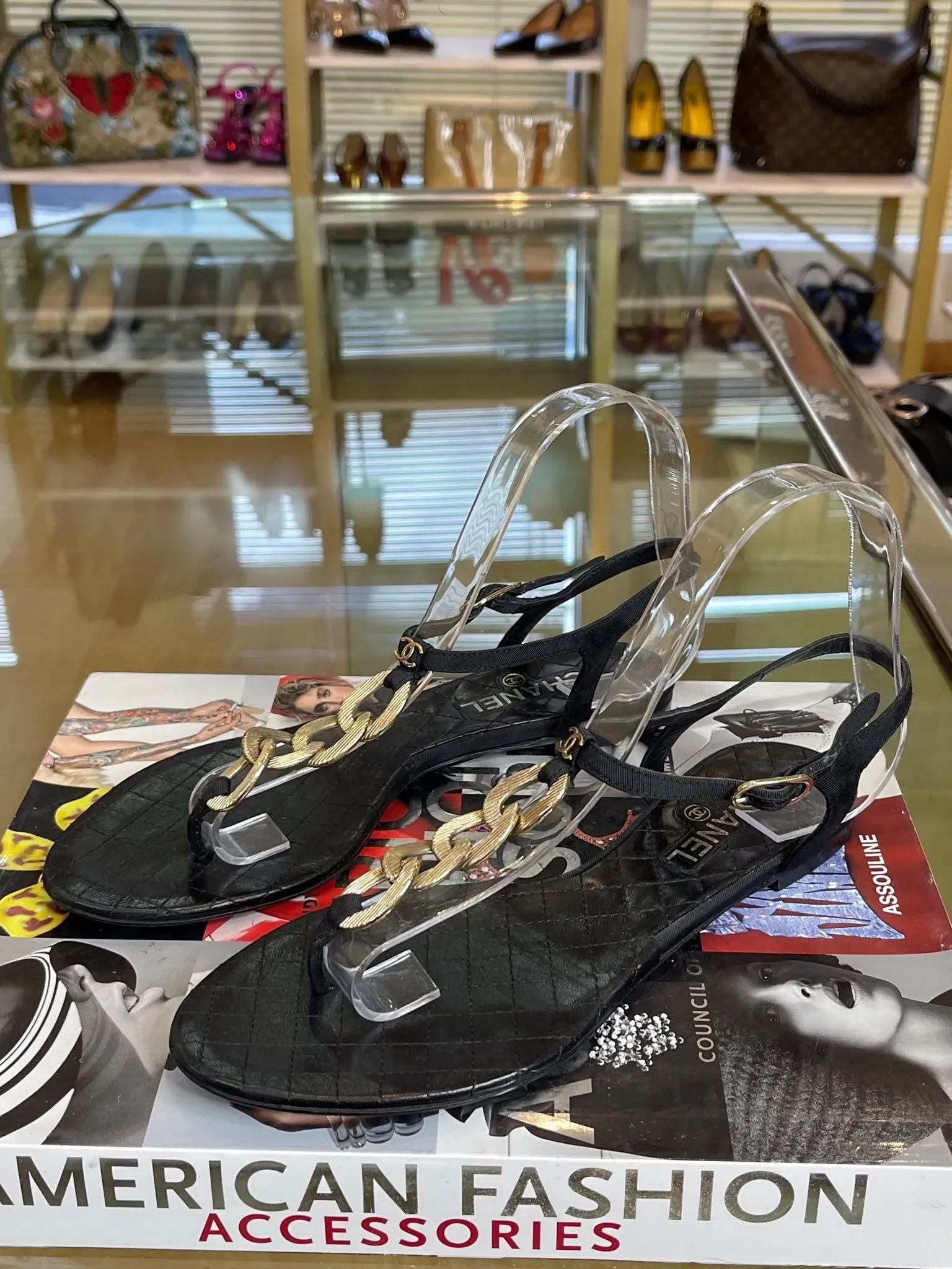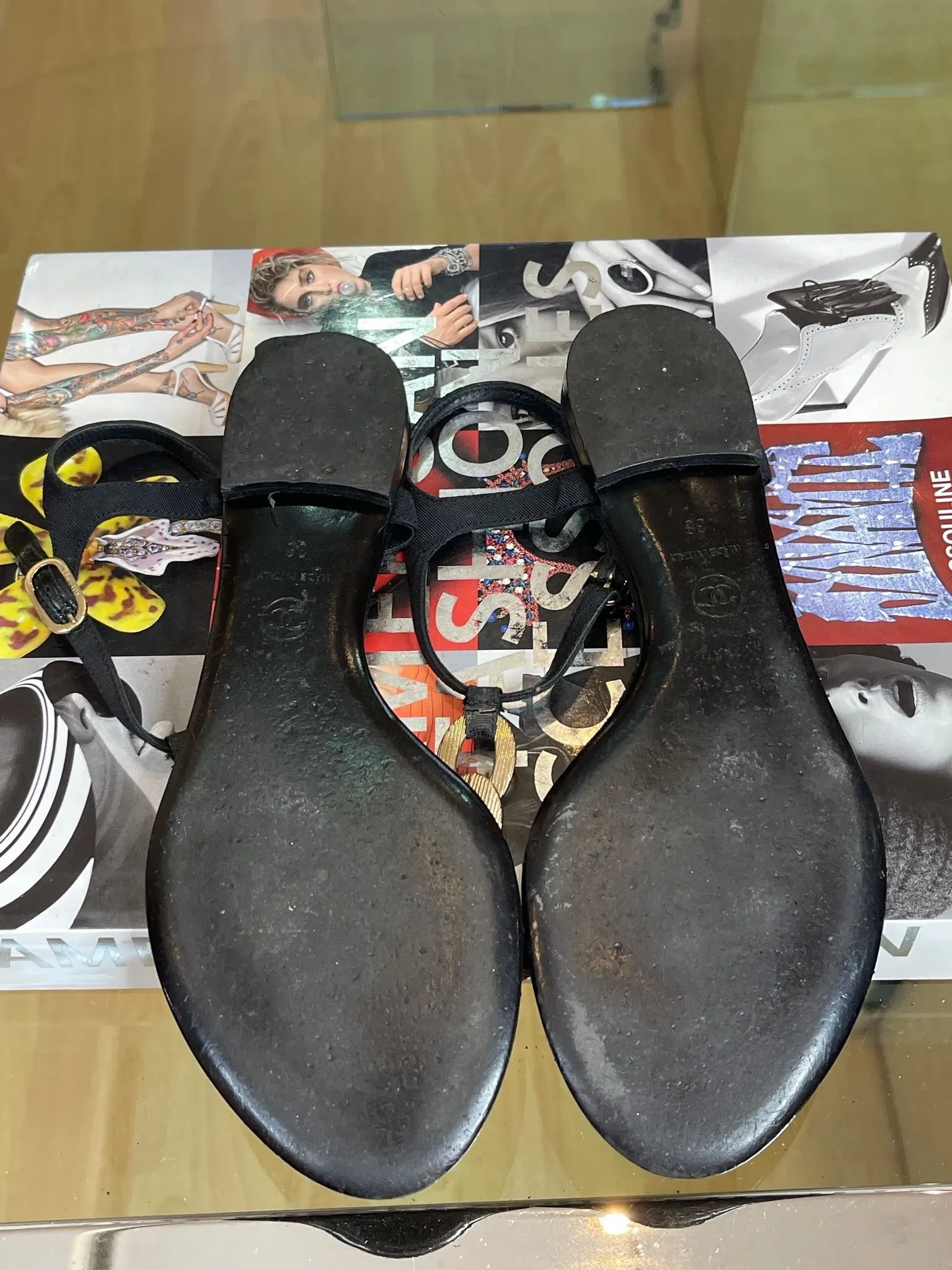 Chanel Interlocking CC Logo Leather T Strap Sandals 38