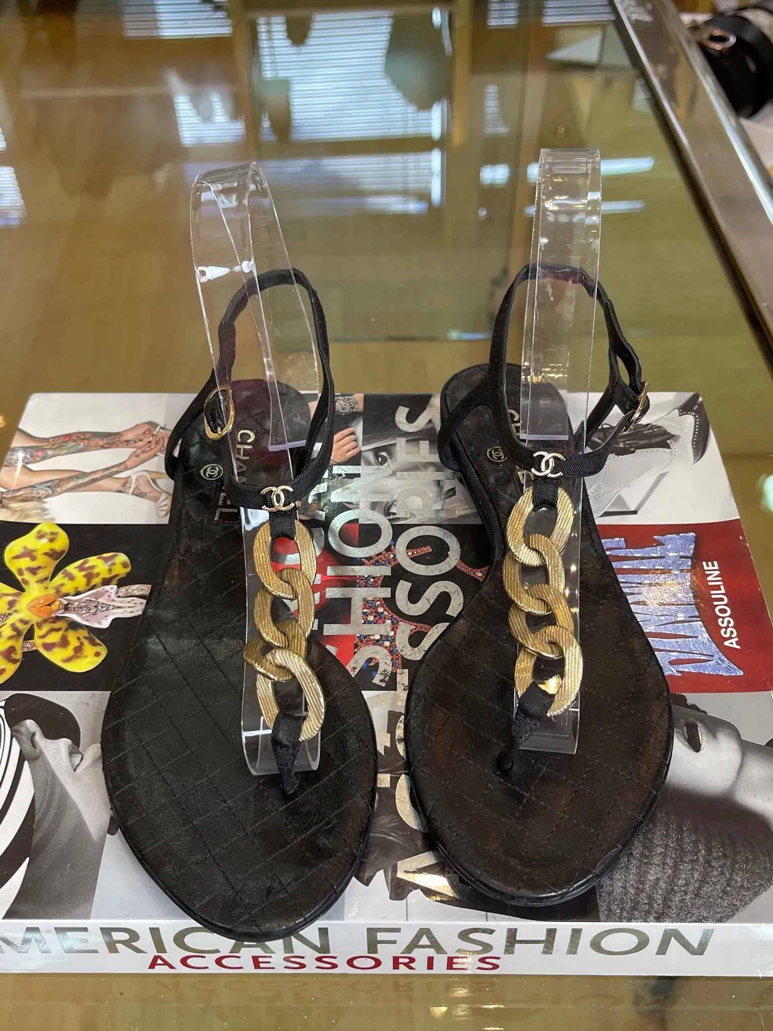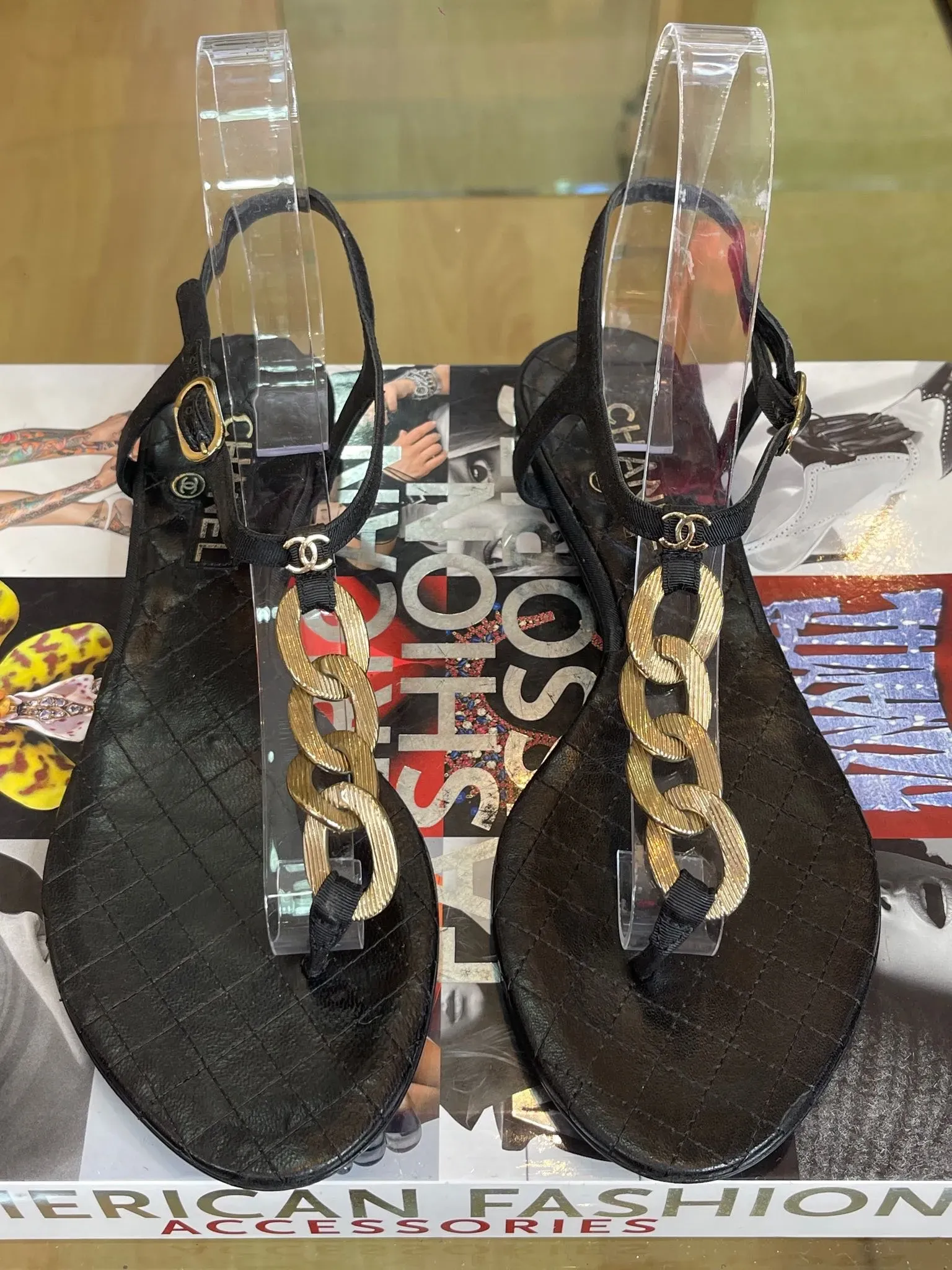 Sandalias de cuero con correa en T y el icónico logo entrelazado CC de Chanel. Talla 38. Estilo elegante y sofisticado para lucir con cualquier outfit. Perfectas para añadir un toque de lujo a tu look diario. ¡Hazte con estas sandalias de diseñador y destaca en cualquier ocasión!