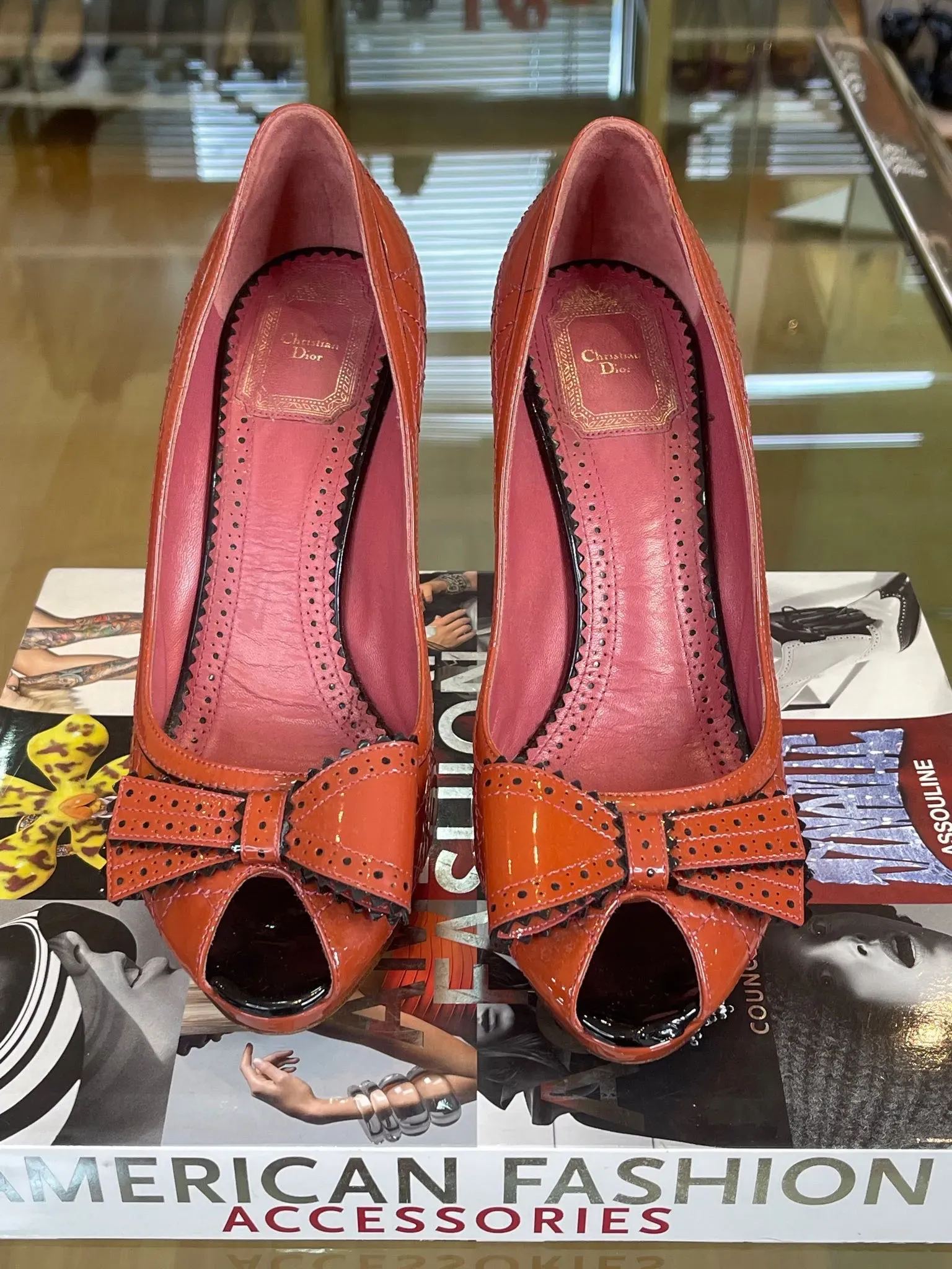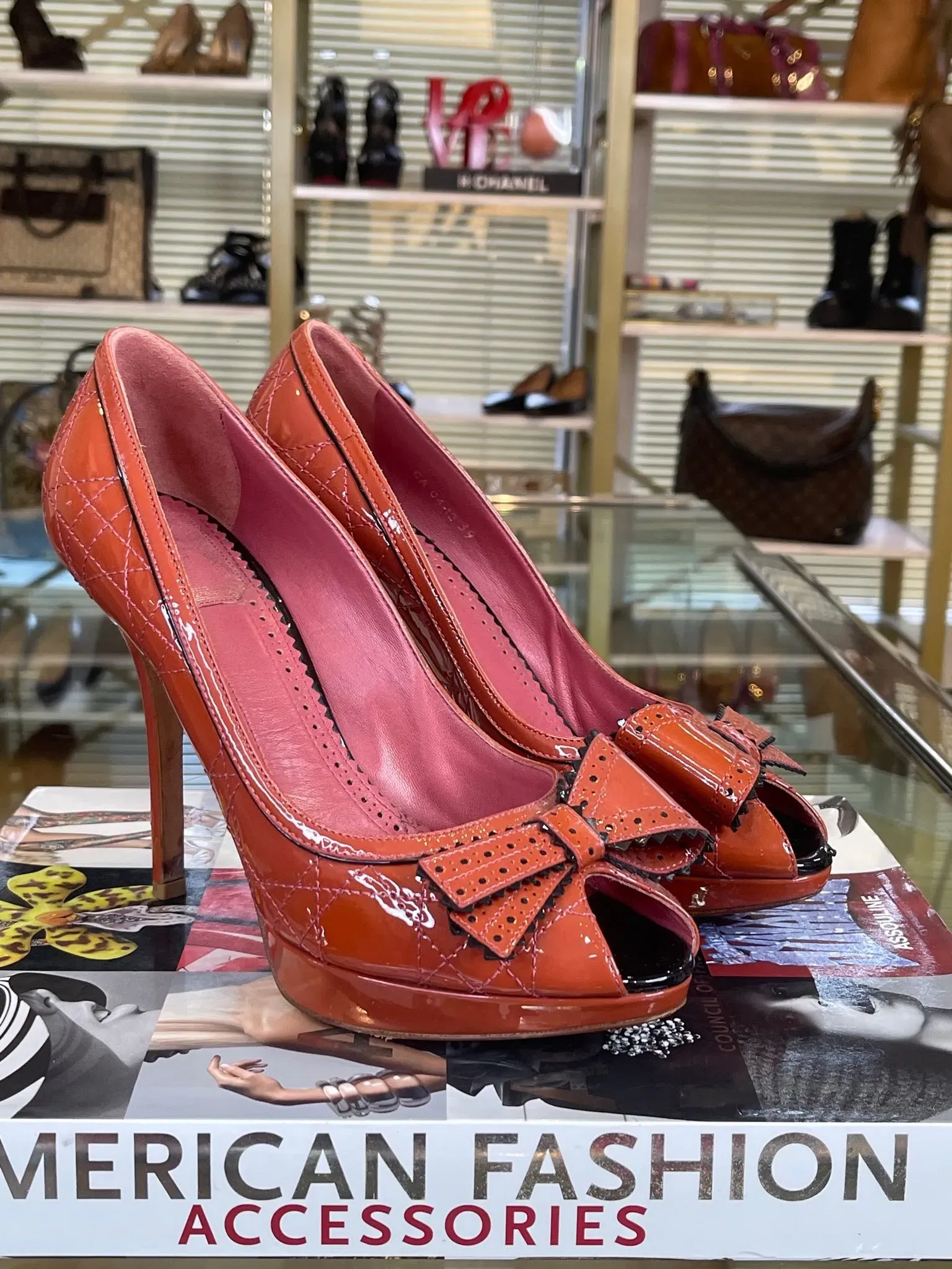 Christian Dior Pink Patent Cannage Leather Peep Pumps 39
