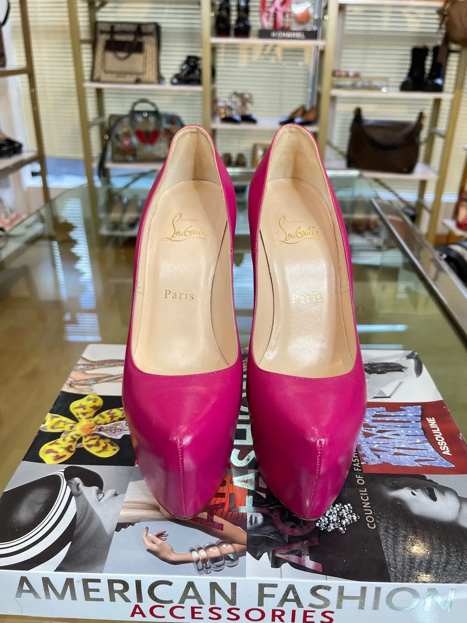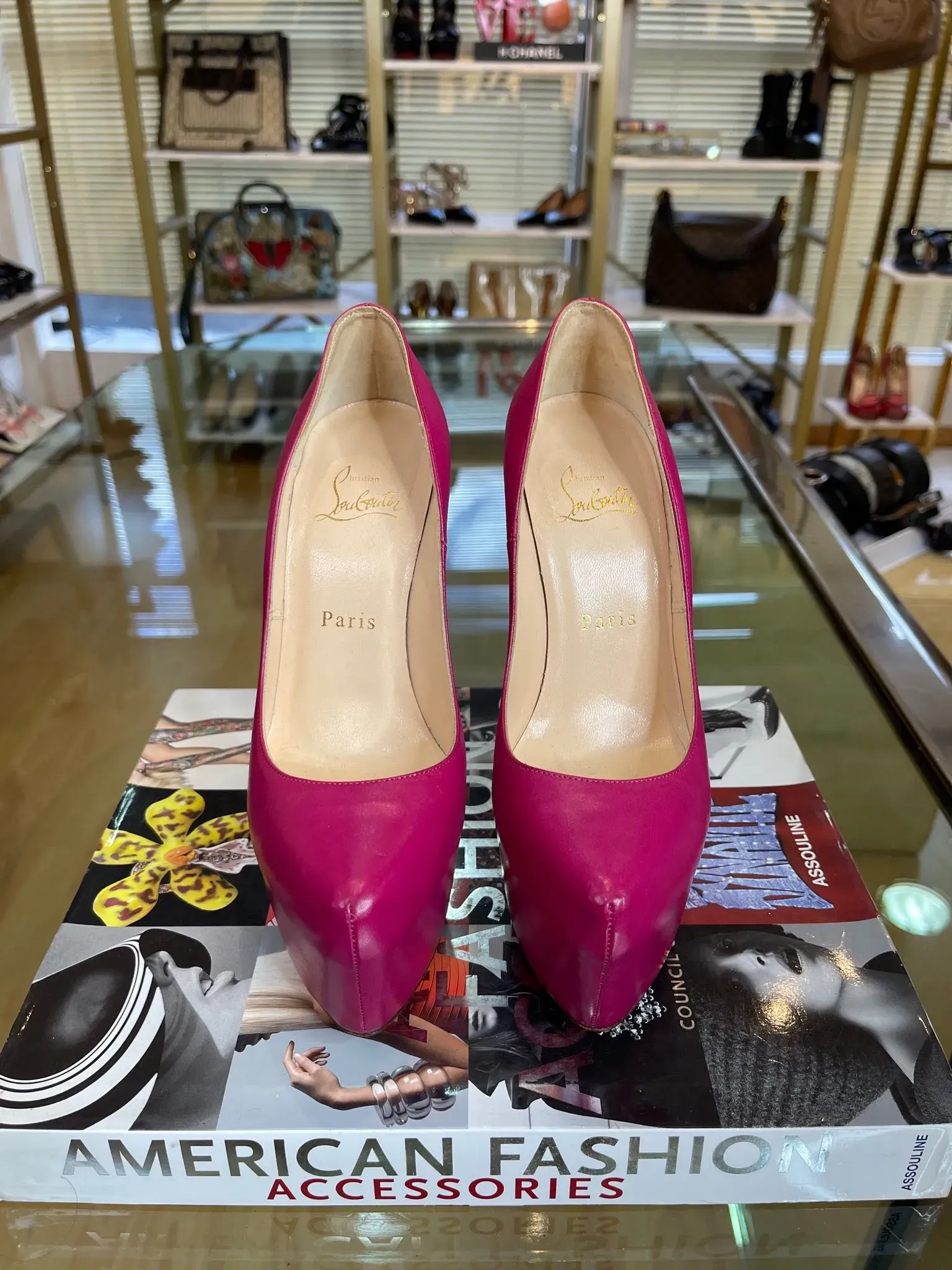 Estos impresionantes tacones Christian Louboutin en cuero fucsia son el complemento perfecto para cualquier ocasión especial. Con una altura de plataforma de 160 mm, te harán lucir elegante y sofisticada. ¡Destaca con estilo con los Victiria 160 Platforms!