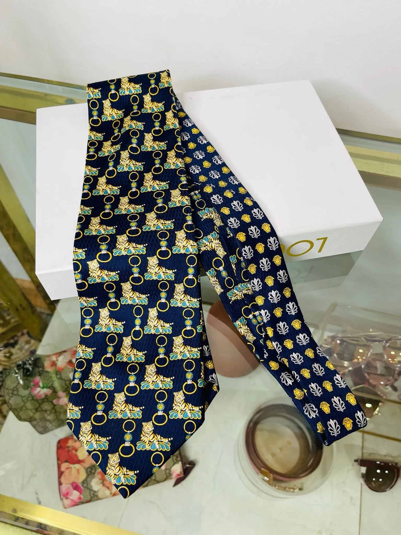 Corbata de caballero Versace, un accesorio elegante y sofisticado que realzará tu estilo. Confeccionada con materiales de alta calidad y el icónico diseño de la marca italiana. Perfecta para ocasiones especiales o para darle un toque de lujo a tu outfit diario.