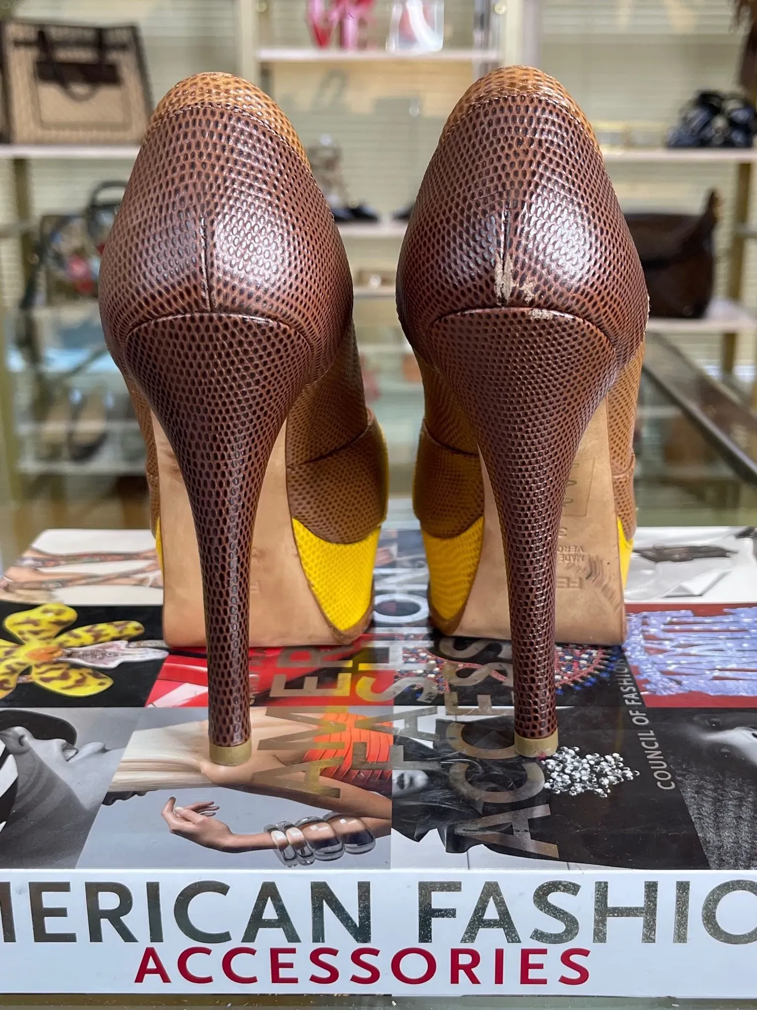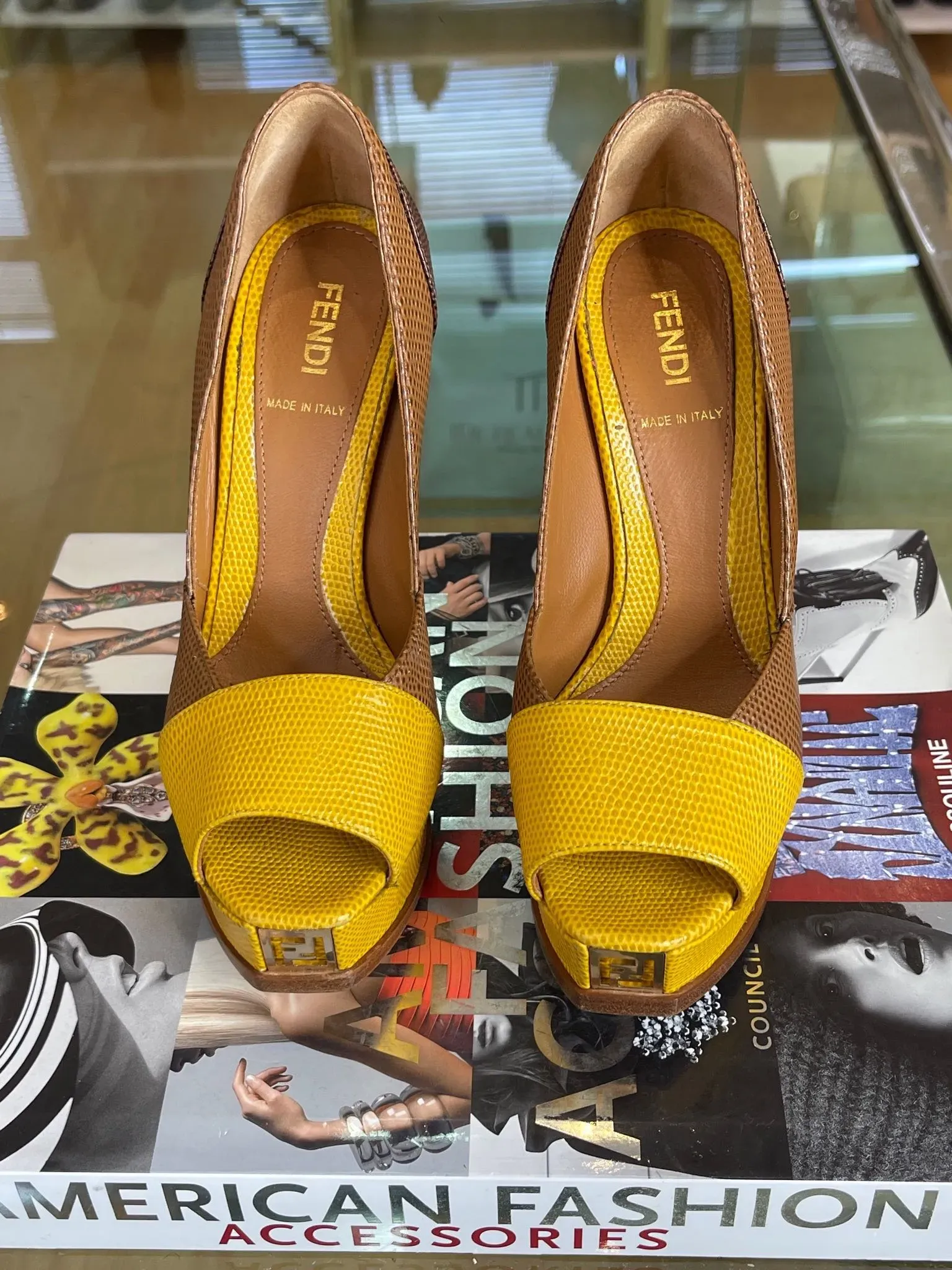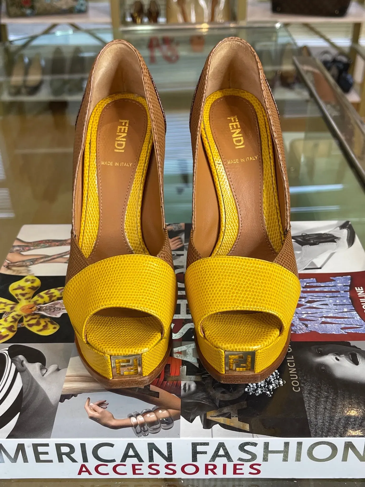 Estos elegantes zapatos de tacón Fendi con estampado de lagarto son el complemento perfecto para cualquier ocasión. Con un diseño único y sofisticado, talla 35, destacarás con estilo y distinción. ¡Hazte con ellos y eleva tu look a otro nivel!