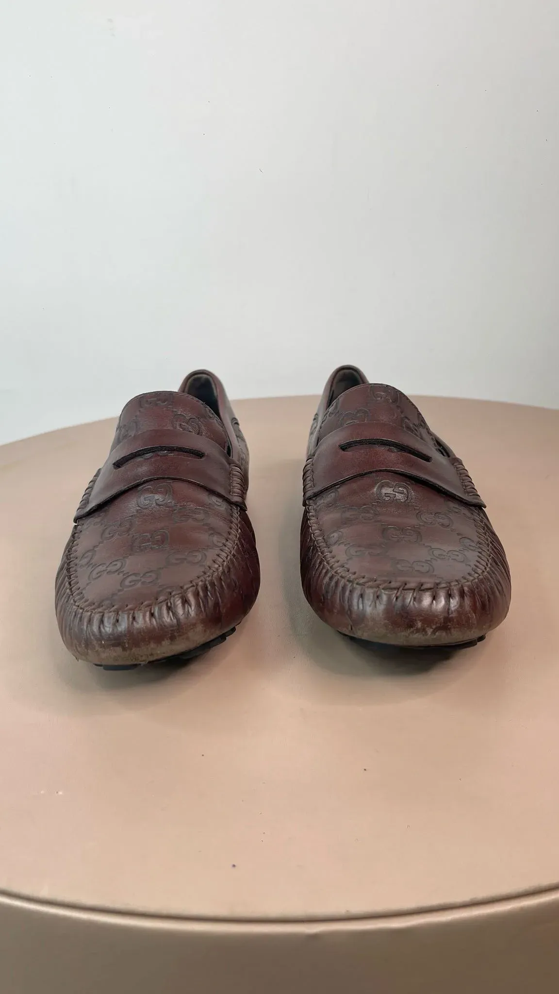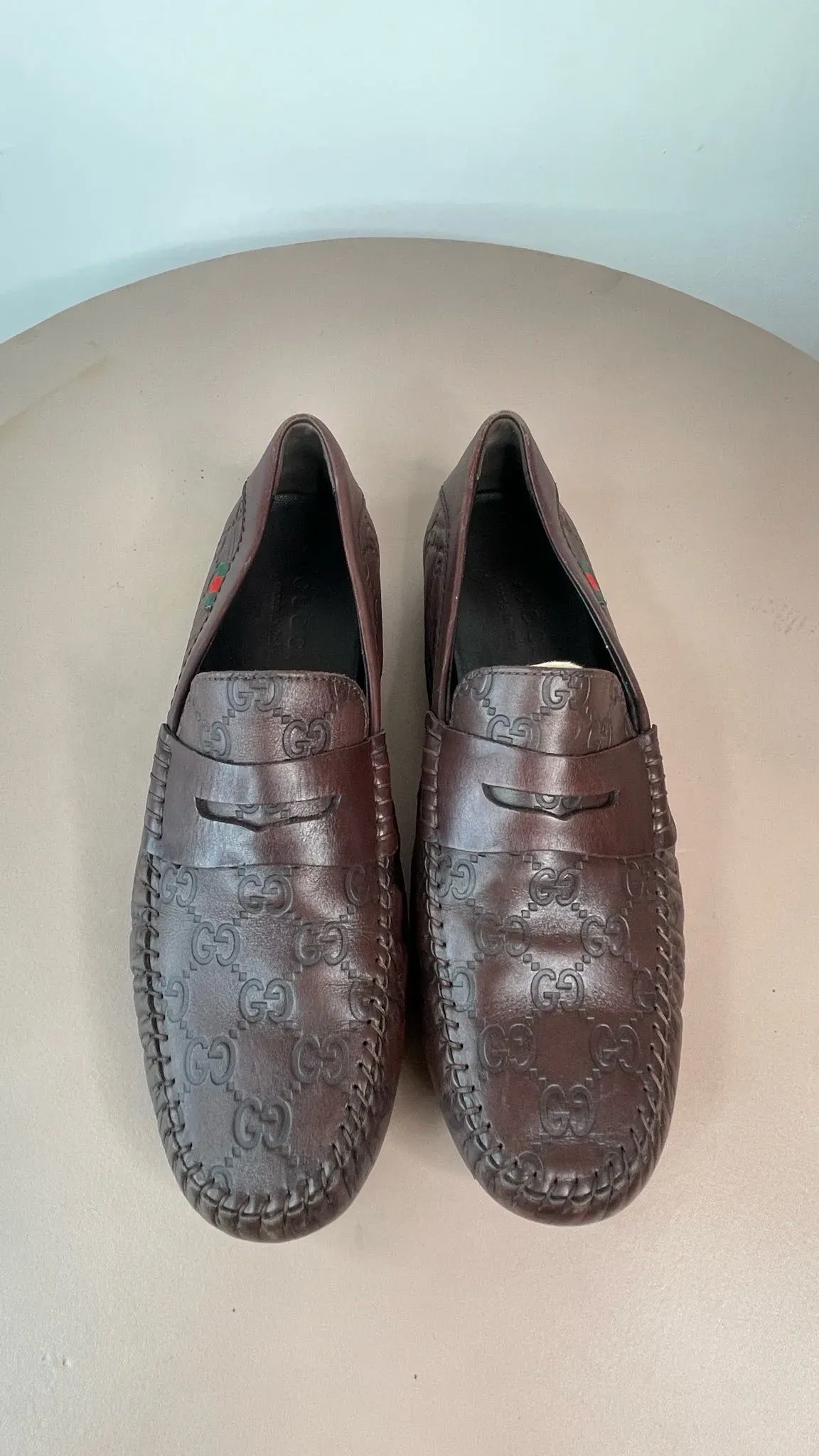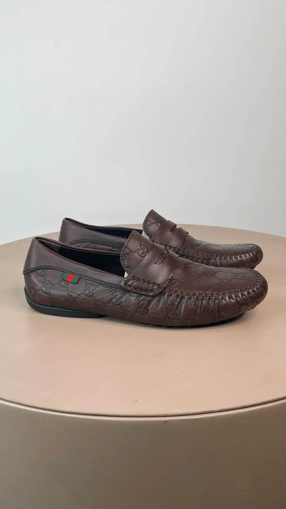 Gucci Dark Brown Guccissima Leather GG Loafers