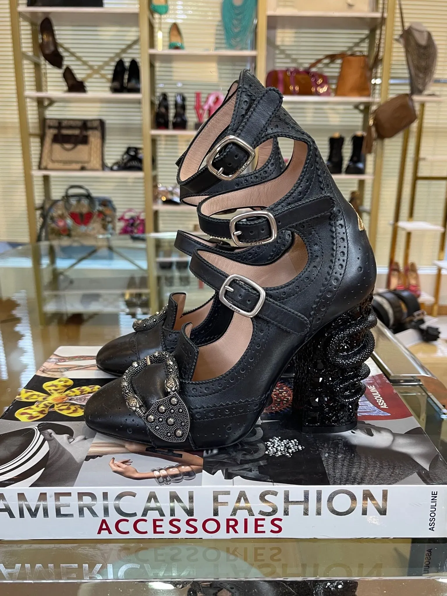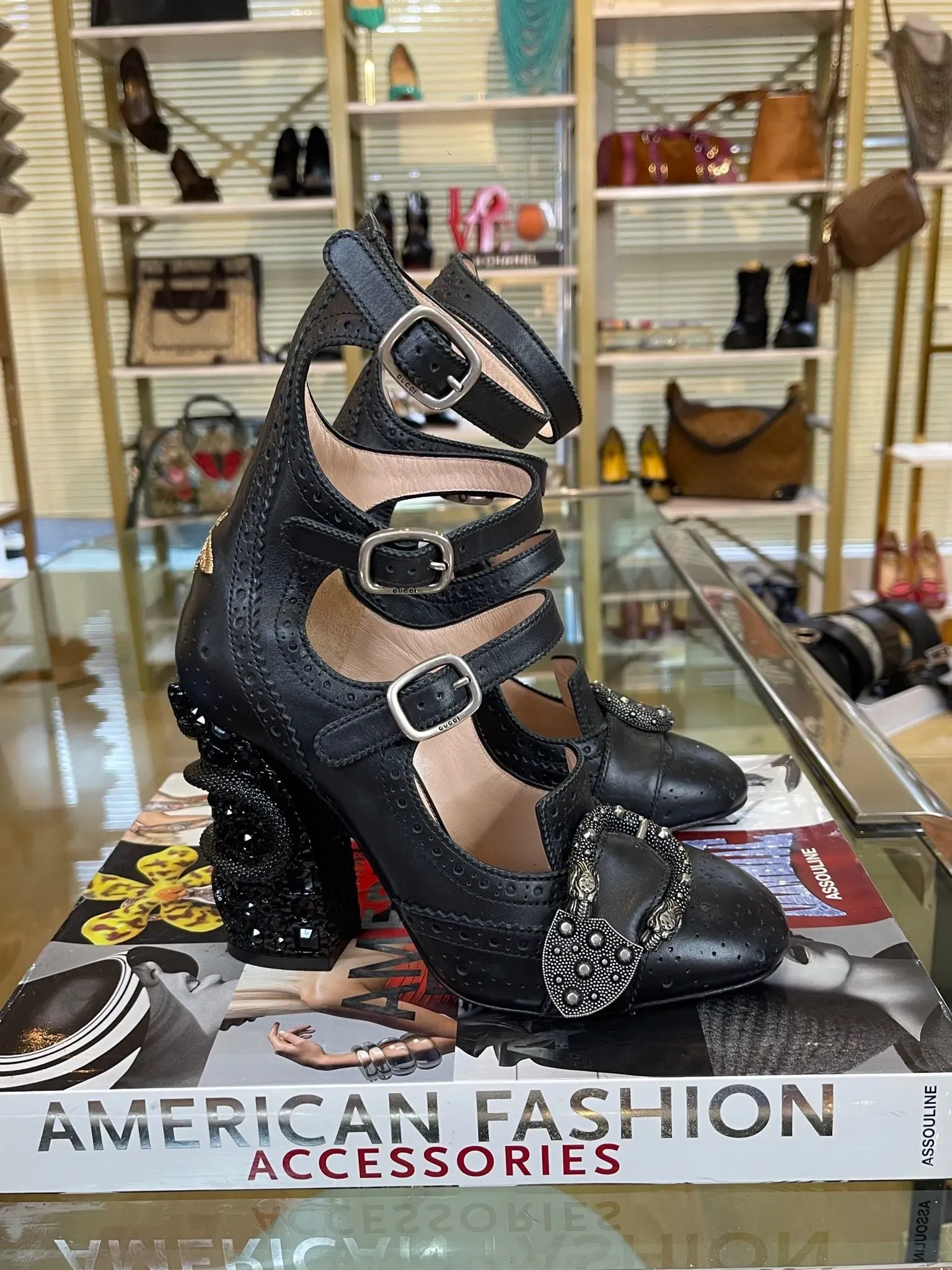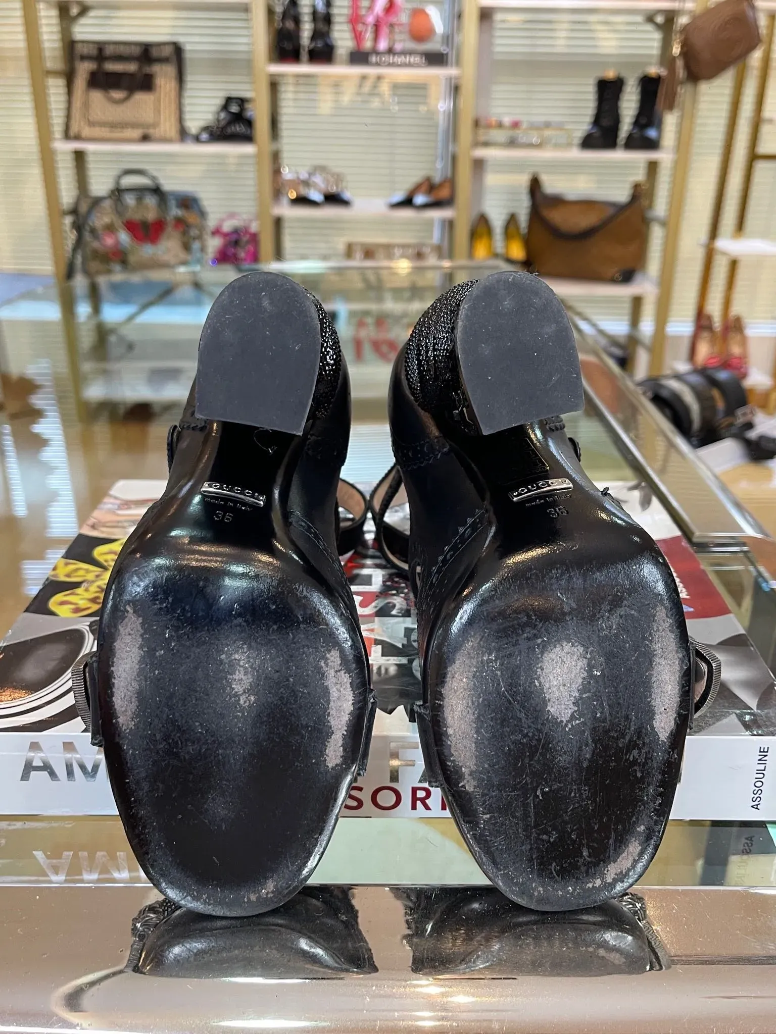 Estos elegantes tacones de cuero Gucci Queercore son el complemento perfecto para cualquier ocasión especial. Con un diseño único y sofisticado, estos zapatos son una declaración de estilo y elegancia. Añade un toque de lujo a tu guardarropa con este par imprescindible.