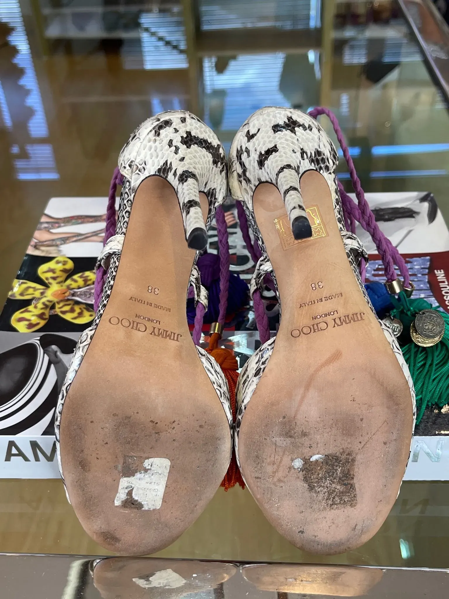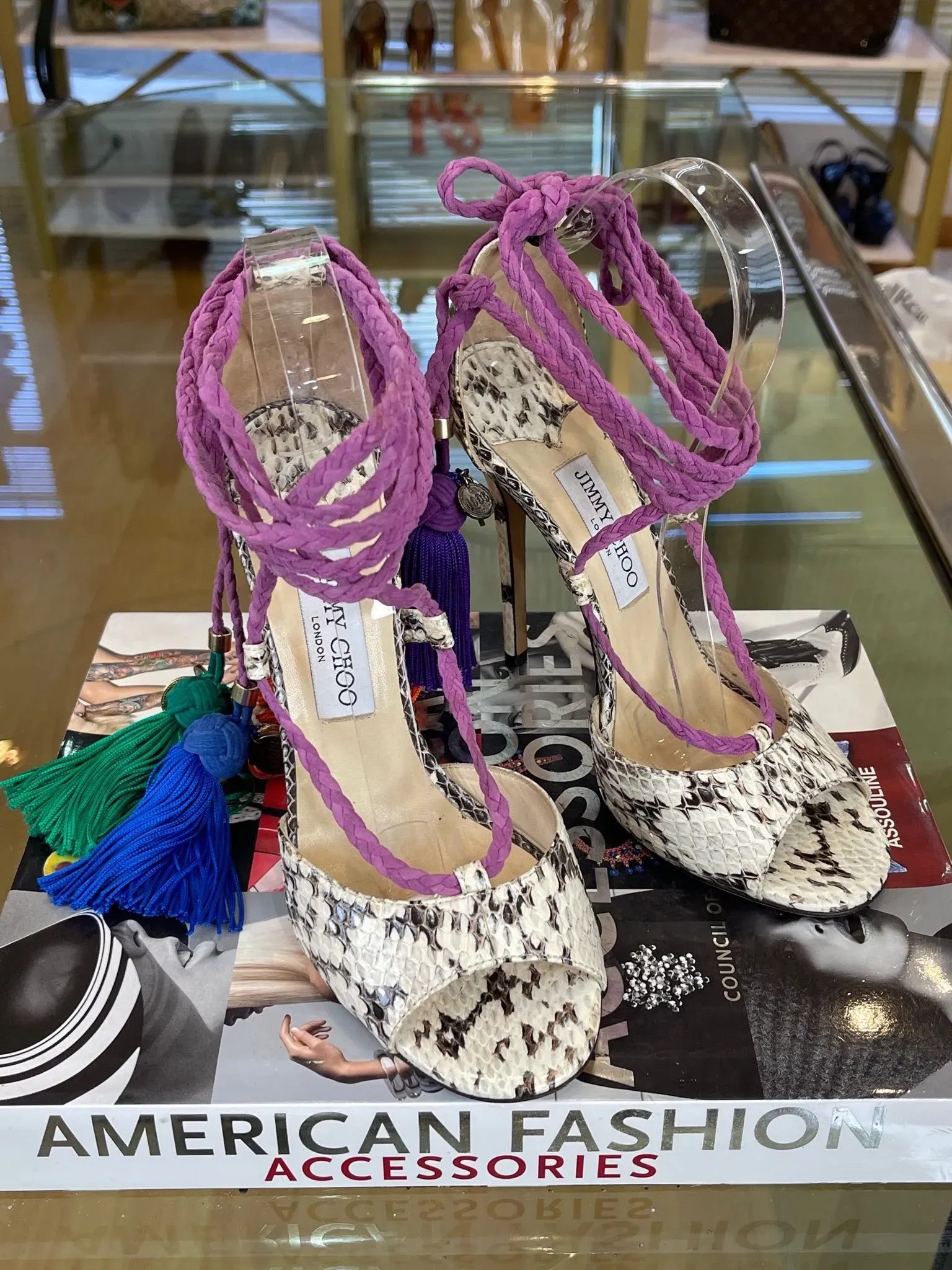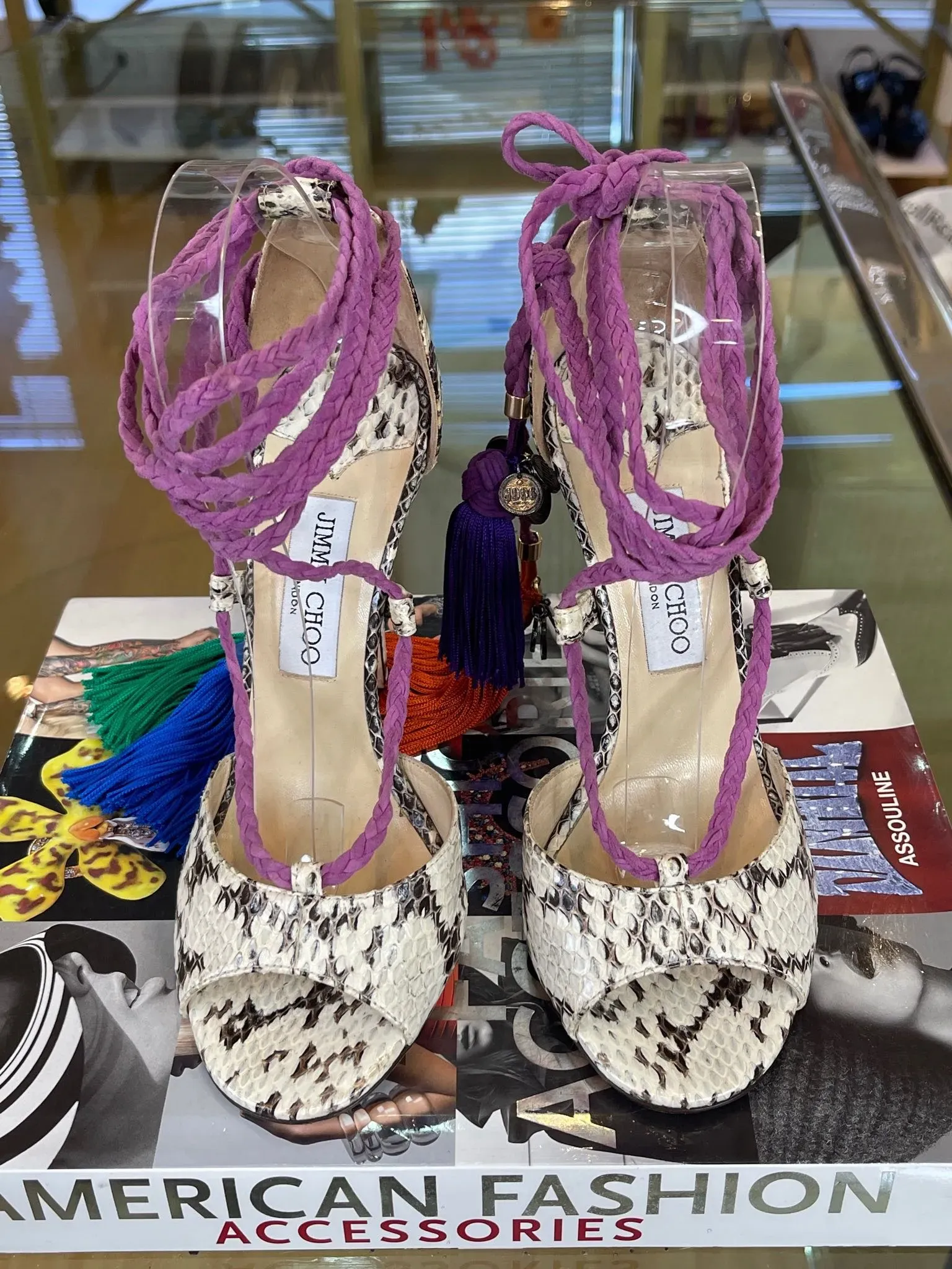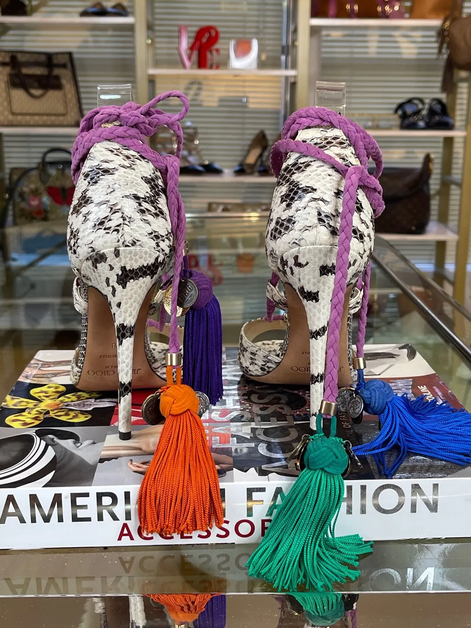 Estas sandalias multicolores de Jimmy Choo en talla 38 son el complemento perfecto para lucir elegante y a la moda. Con un diseño único y llamativo, te harán destacar en cualquier ocasión. ¡Hazte con ellas y añade un toque de glamour a tu estilo!