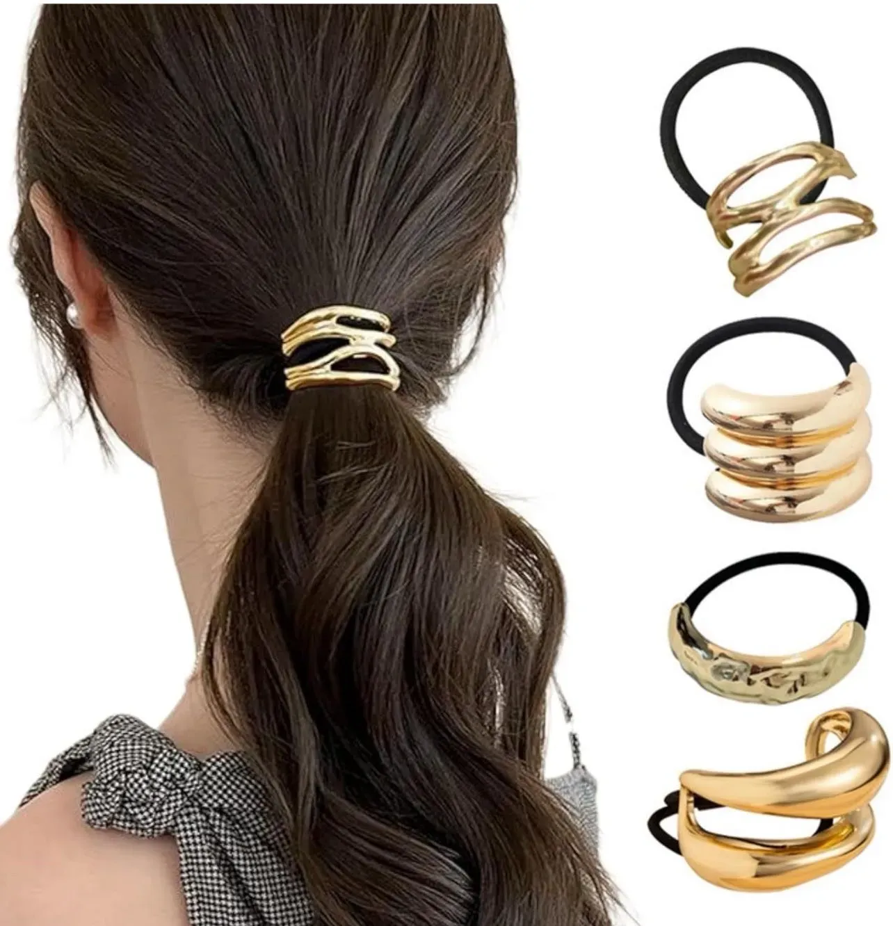 Este Lazo dorado es el complemento perfecto para realzar tu peinado. Con un diseño elegante y sofisticado, estos anillos añaden un toque de glamour a tu cola de caballo. ¡Destaca con estilo y brillo en cualquier ocasión!