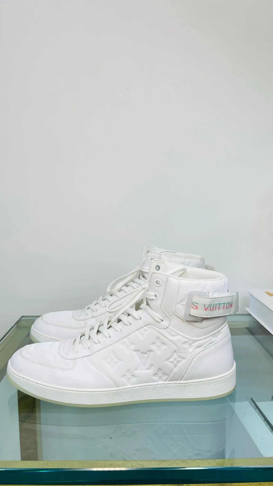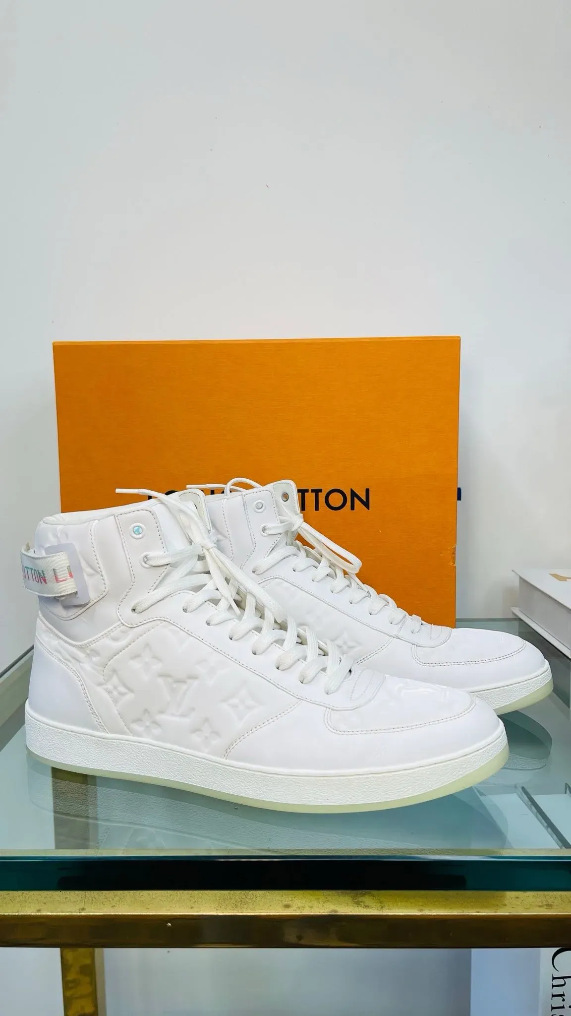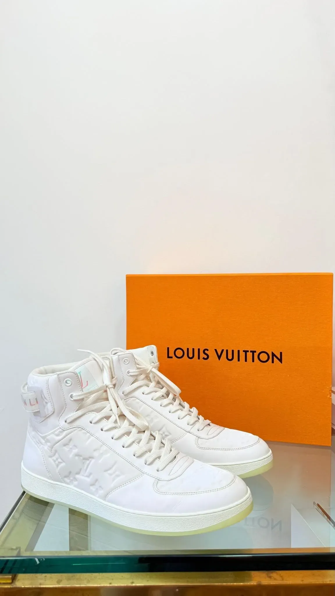 Estos elegantes tenis Louis Vuitton Rivoli de cuero Monogram son el complemento perfecto para cualquier outfit. Con un diseño moderno y sofisticado, te brindarán comodidad y estilo a donde quiera que vayas. ¡Haz una declaración de moda con estos exclusivos sneakers! Talla 10