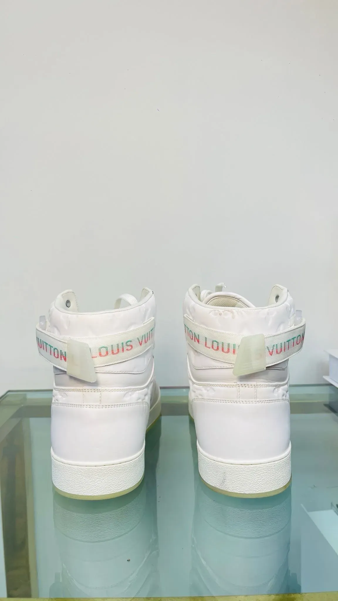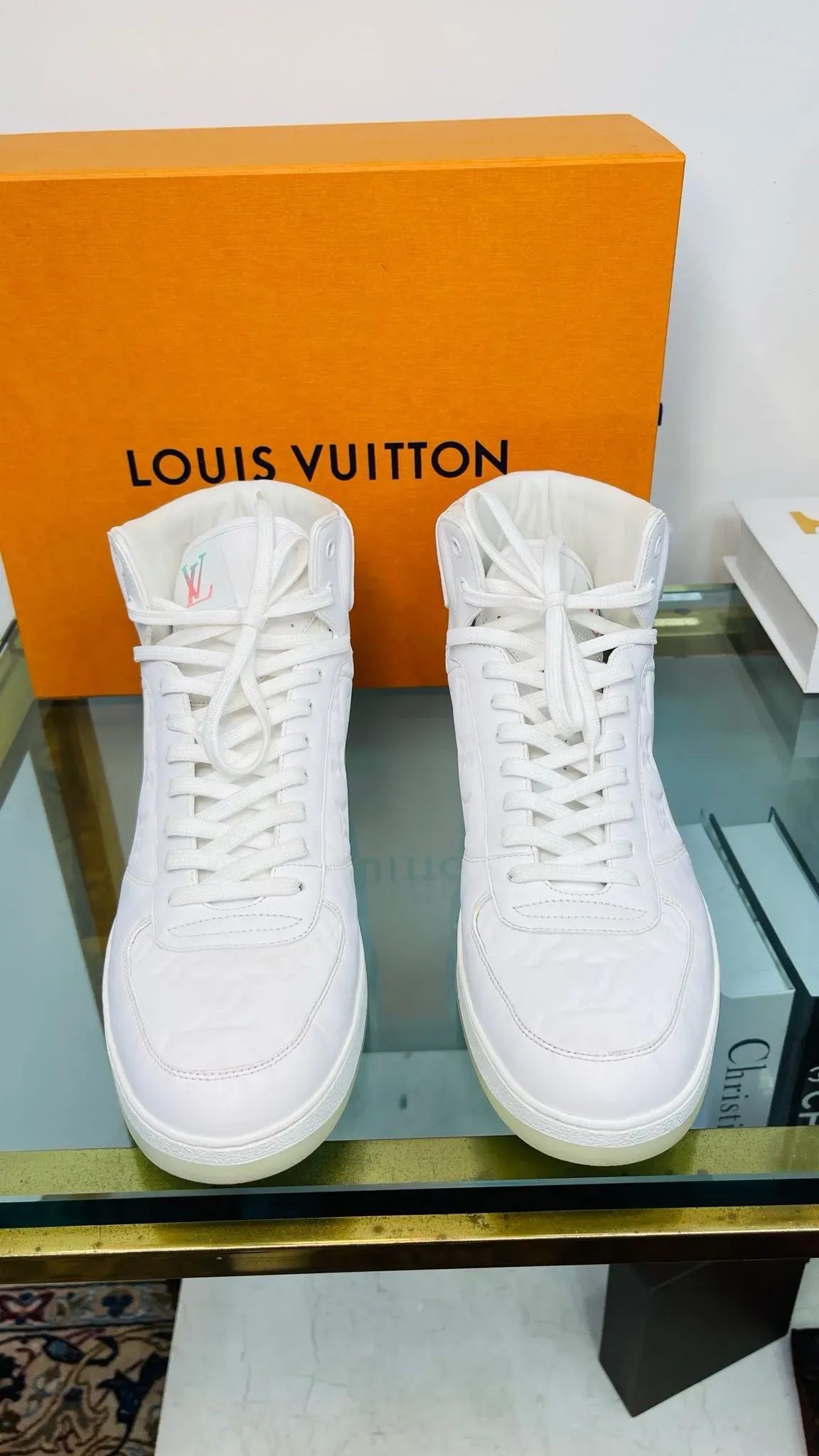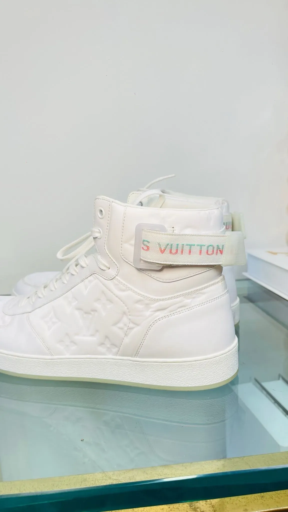Estos elegantes tenis Louis Vuitton Rivoli de cuero Monogram son el complemento perfecto para cualquier outfit. Con un diseño moderno y sofisticado, te brindarán comodidad y estilo a donde quiera que vayas. ¡Haz una declaración de moda con estos exclusivos sneakers! Talla 10