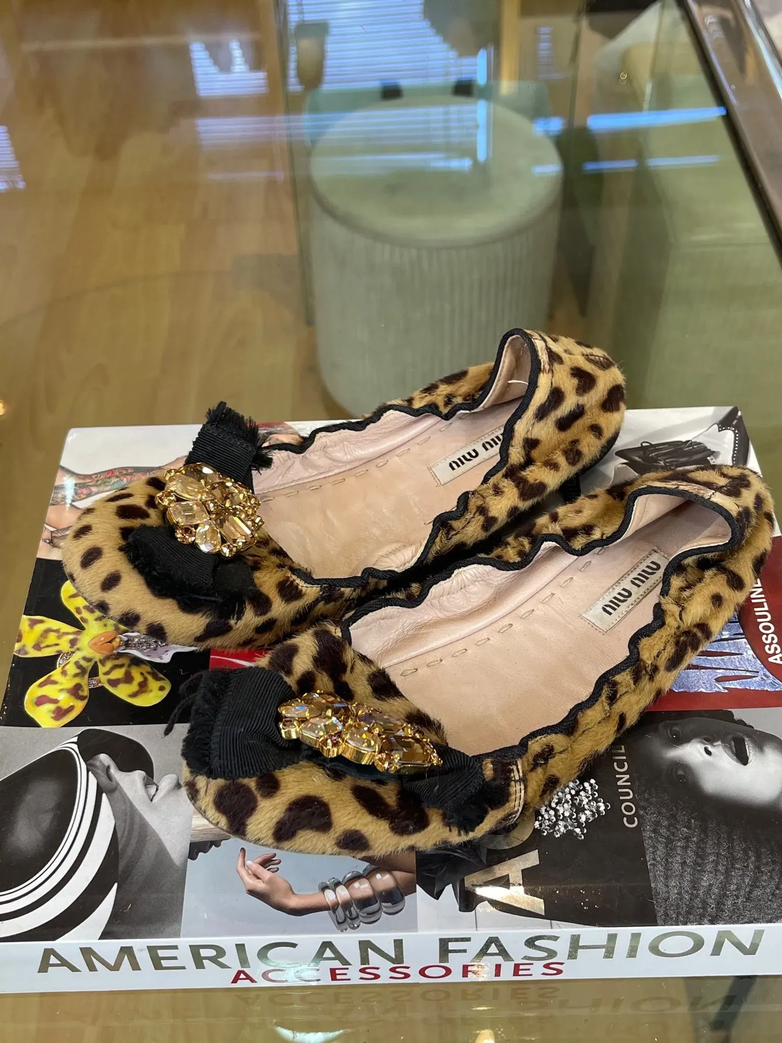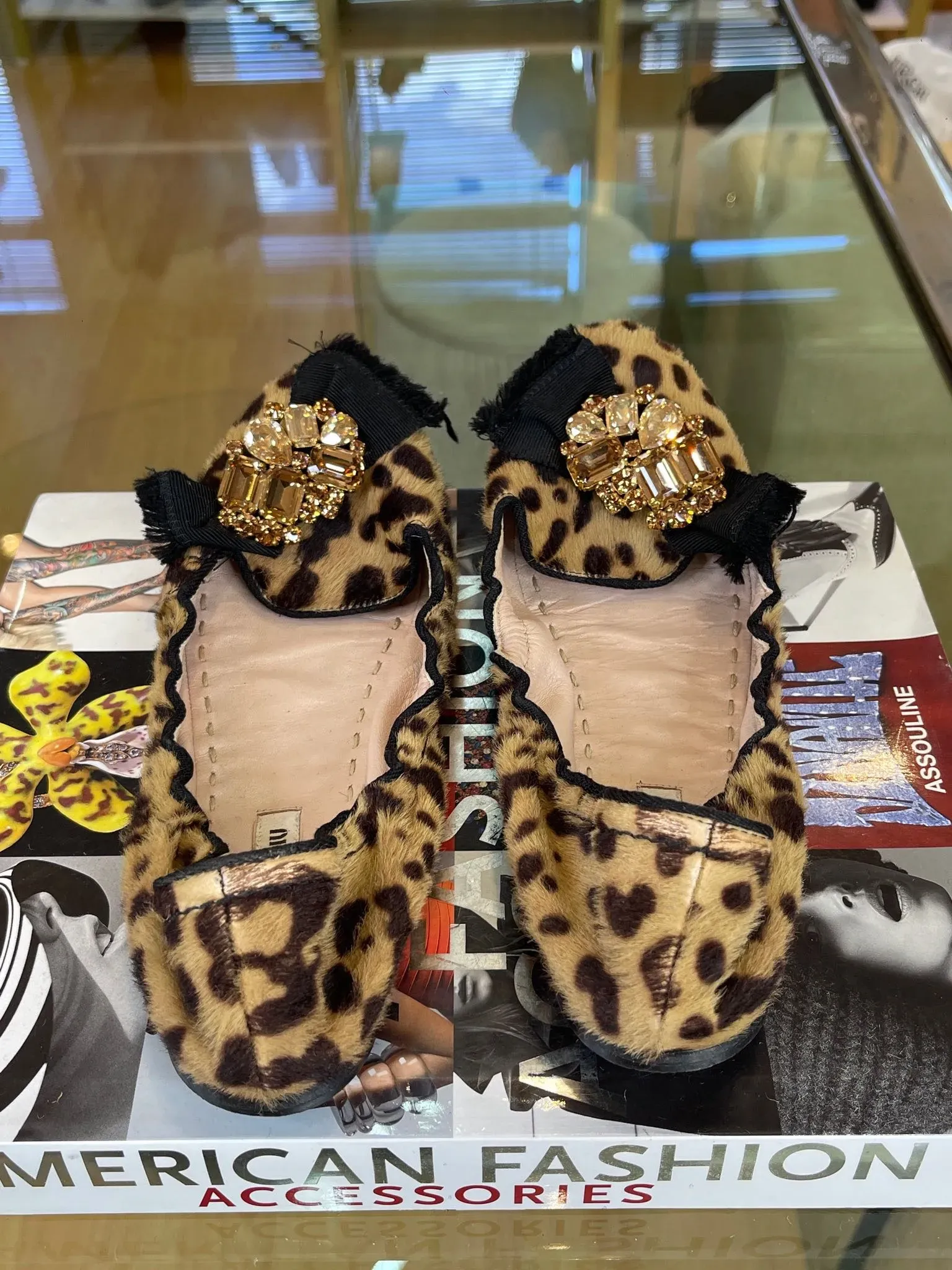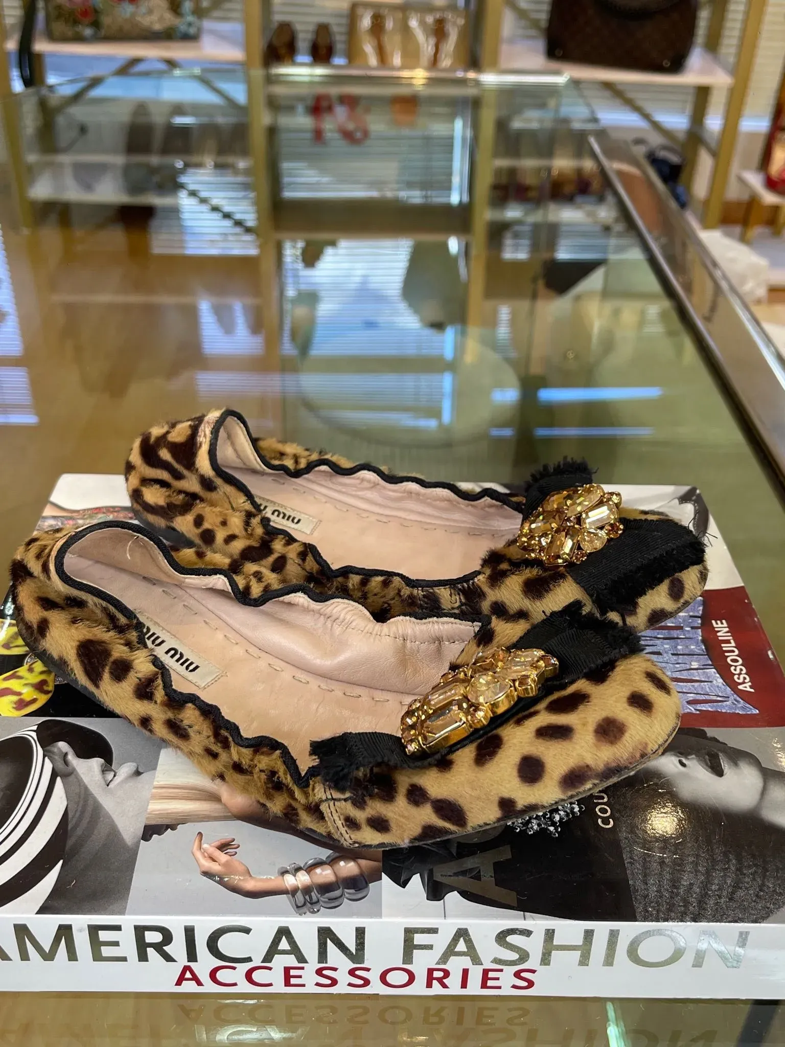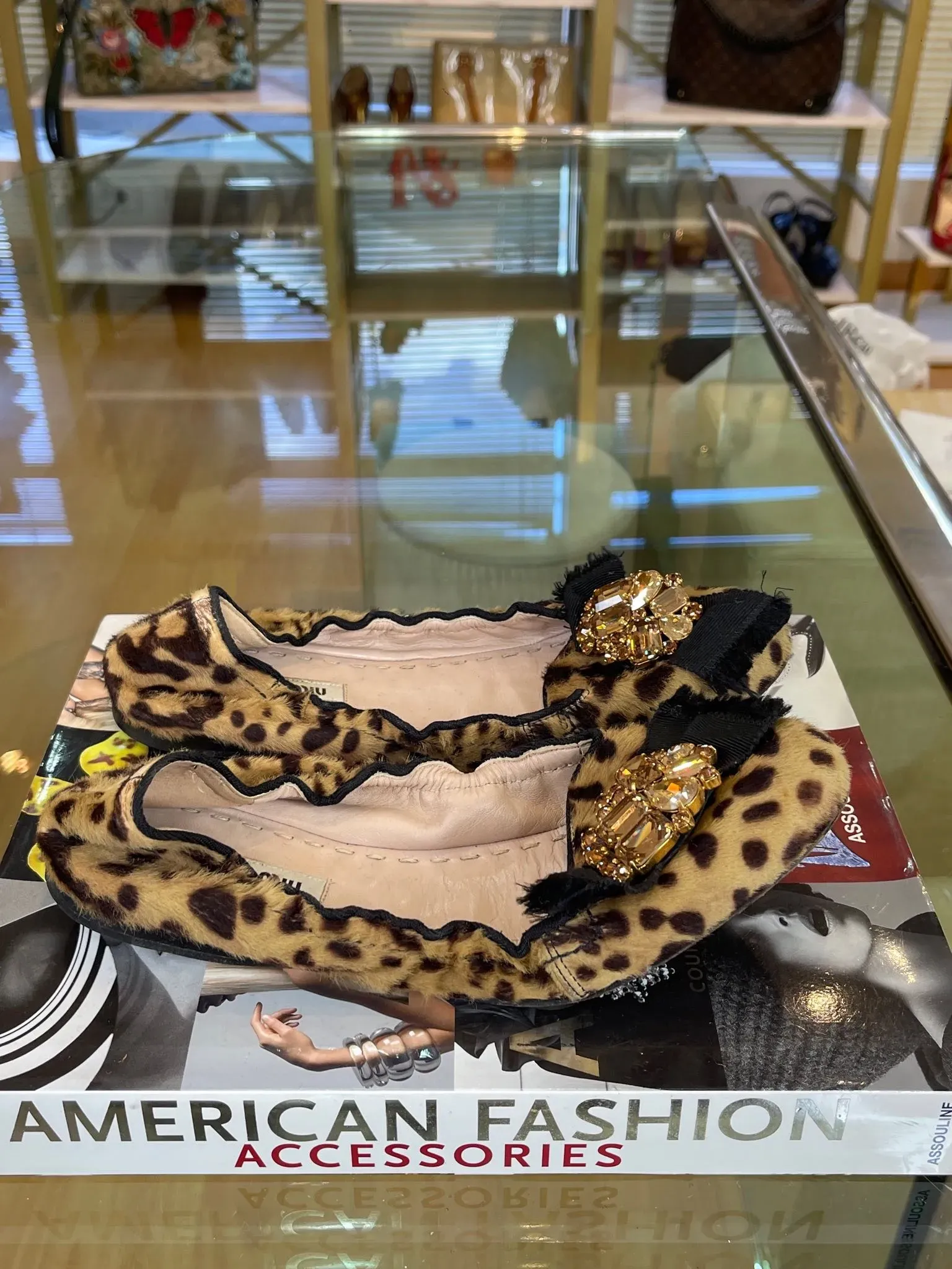 Estos elegantes flats de Miu Miu con estampado animal en talla 38.5 son el complemento perfecto para cualquier outfit. Con un diseño moderno y sofisticado, te harán lucir a la moda y cómoda a la vez. ¡Hazte con ellos y destaca tu estilo único!