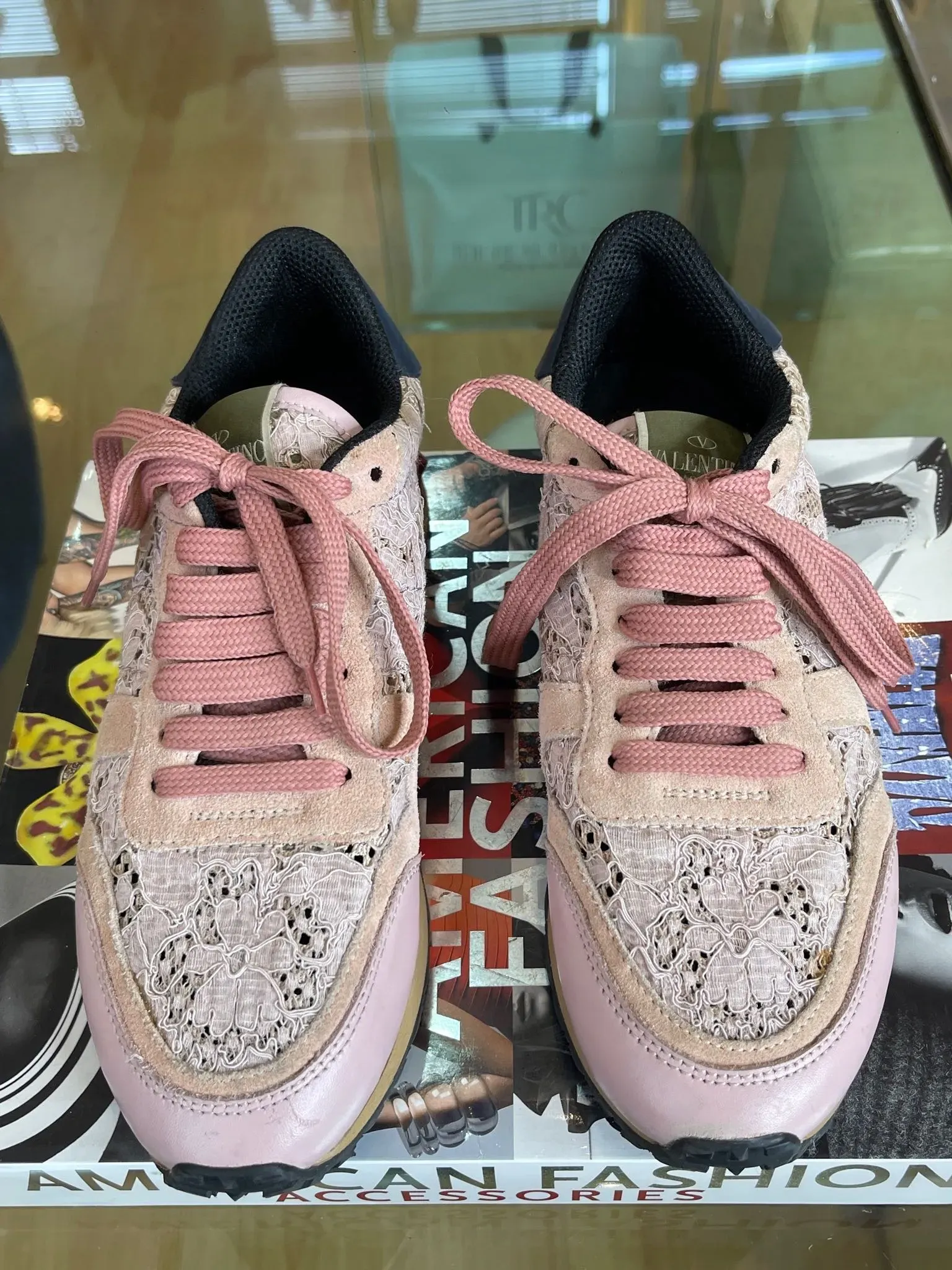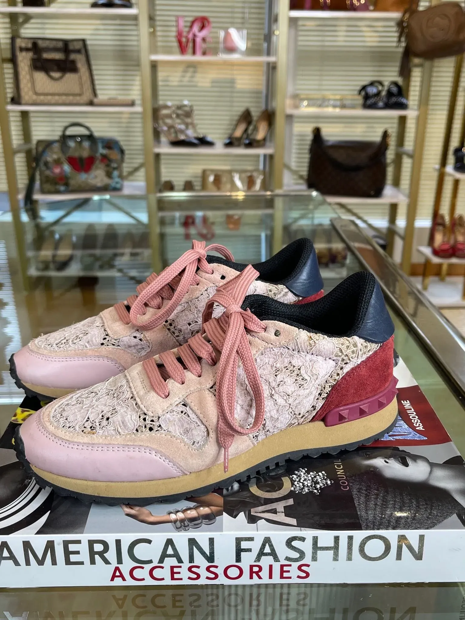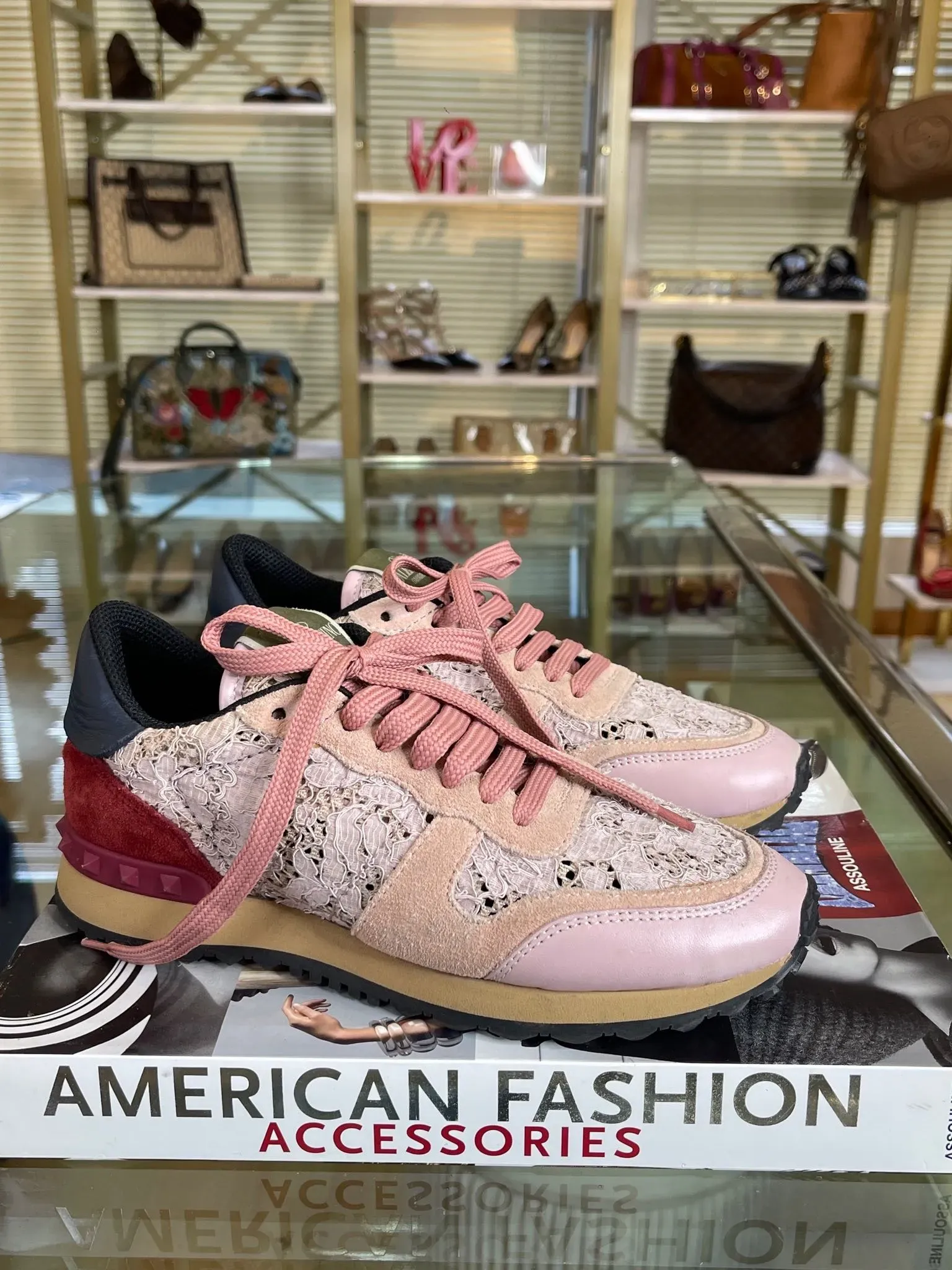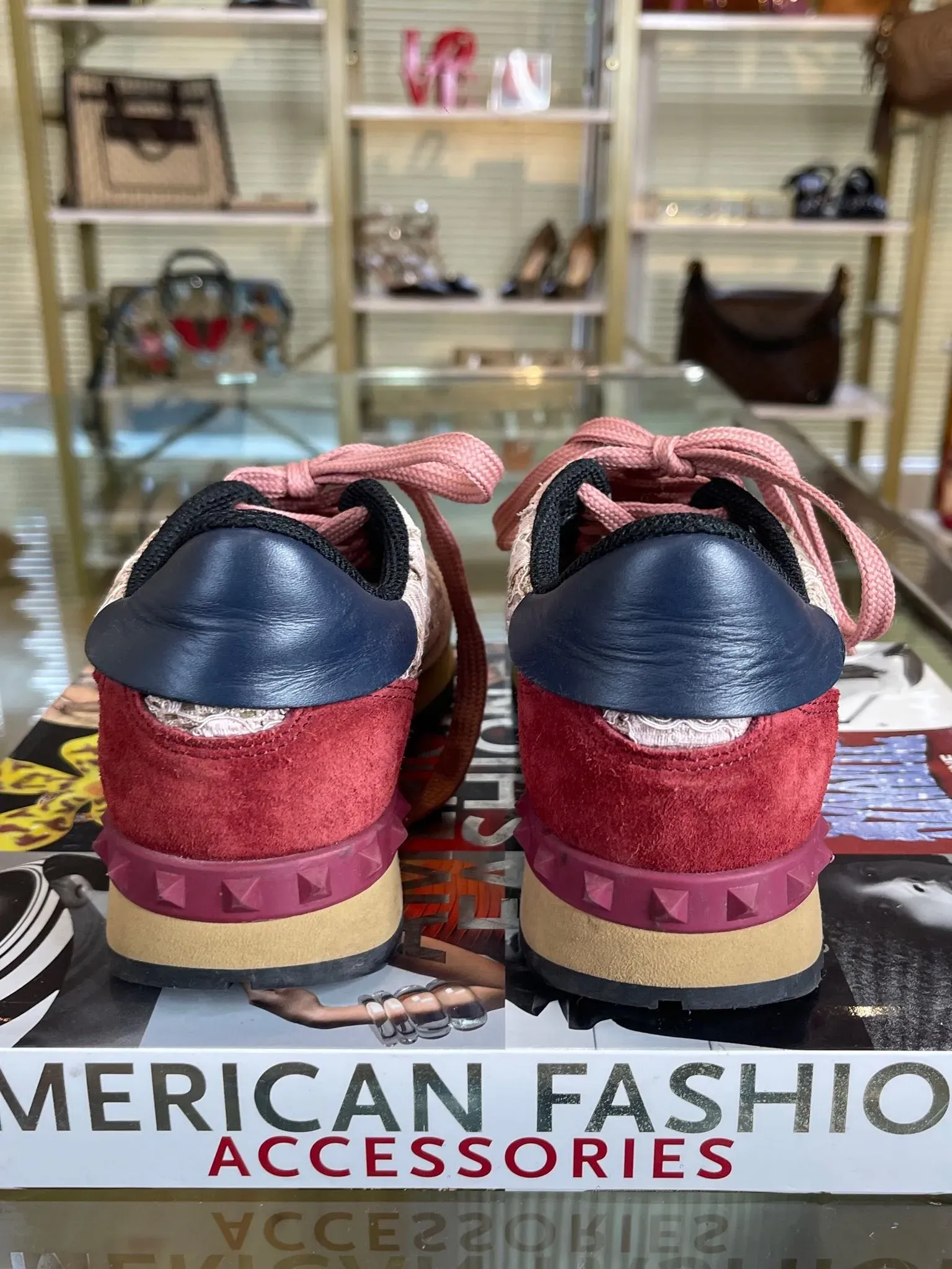 Estos elegantes tenis deportivos Valentino Rockstud Accents están diseñados con detalles de tachuelas y confeccionados en ante de alta calidad. Talla 36. Aporta estilo y comodidad a tus outfits diarios con este calzado de lujo.
